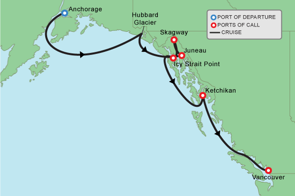 We sail from Seward (just outside of Anchorage) on July 28 and reach Vancouver August 4 on Celebrity cruises.